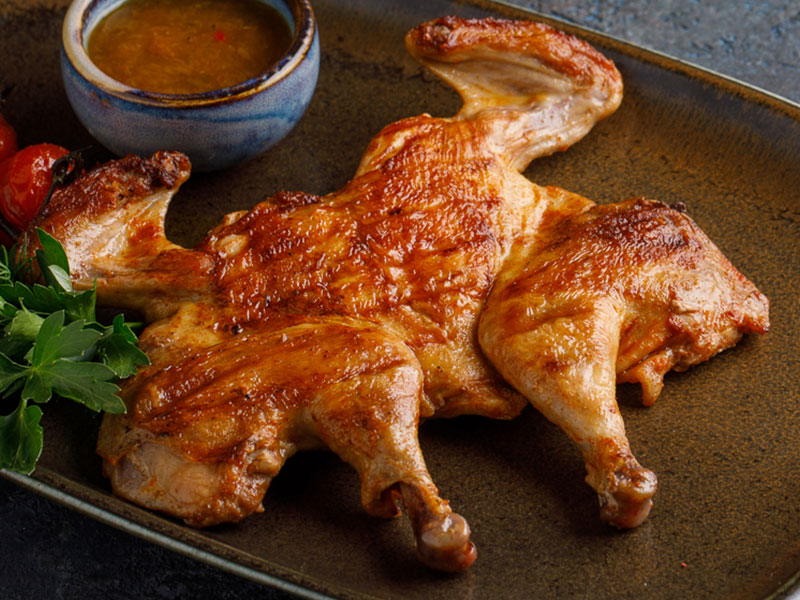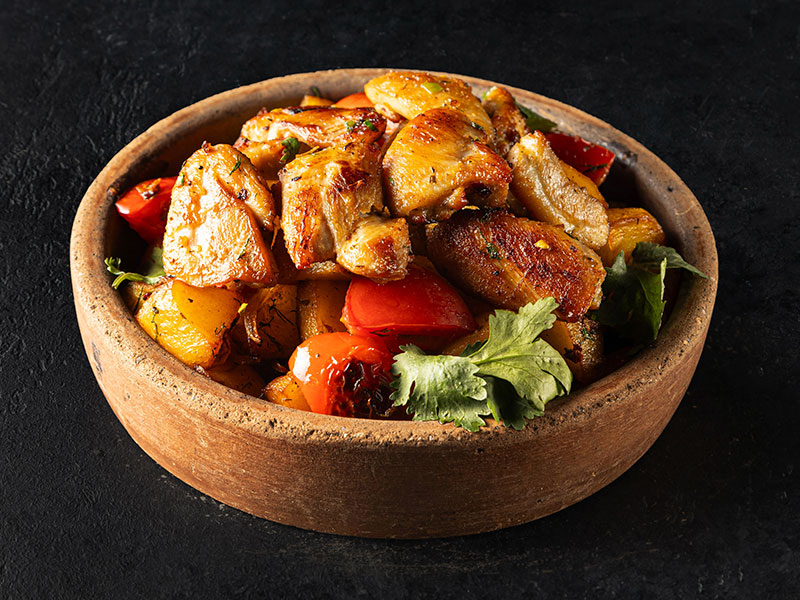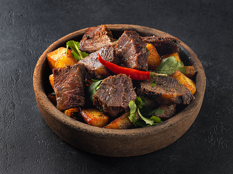 Медальоны из телятины в перечном соусе с картофелем на углях
